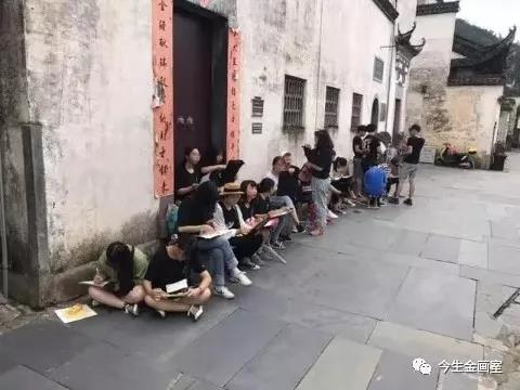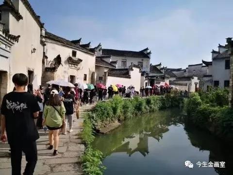 徽派式的建筑、朦朧的古宅、水墨色的磚瓦、夢(mèng)幻般的水鄉(xiāng),都在金粉的畫中呈現(xiàn)的栩栩如生。金粉們的身影,在宏村景區(qū)內(nèi)隨處可見,無(wú)論是烈日當(dāng)空還是大雨滂沱,金粉們都沉浸于畫作,堅(jiān)守于初心。